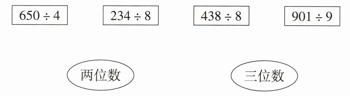 【答案】:$234÷8$、$438÷8$与“两位数”相连;$650÷4$、$901÷9$与“三位数”相连。
