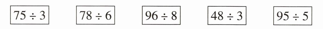 【答案】:$75÷3$,$95÷5$,$48÷3$,$78÷6$,$96÷8$。