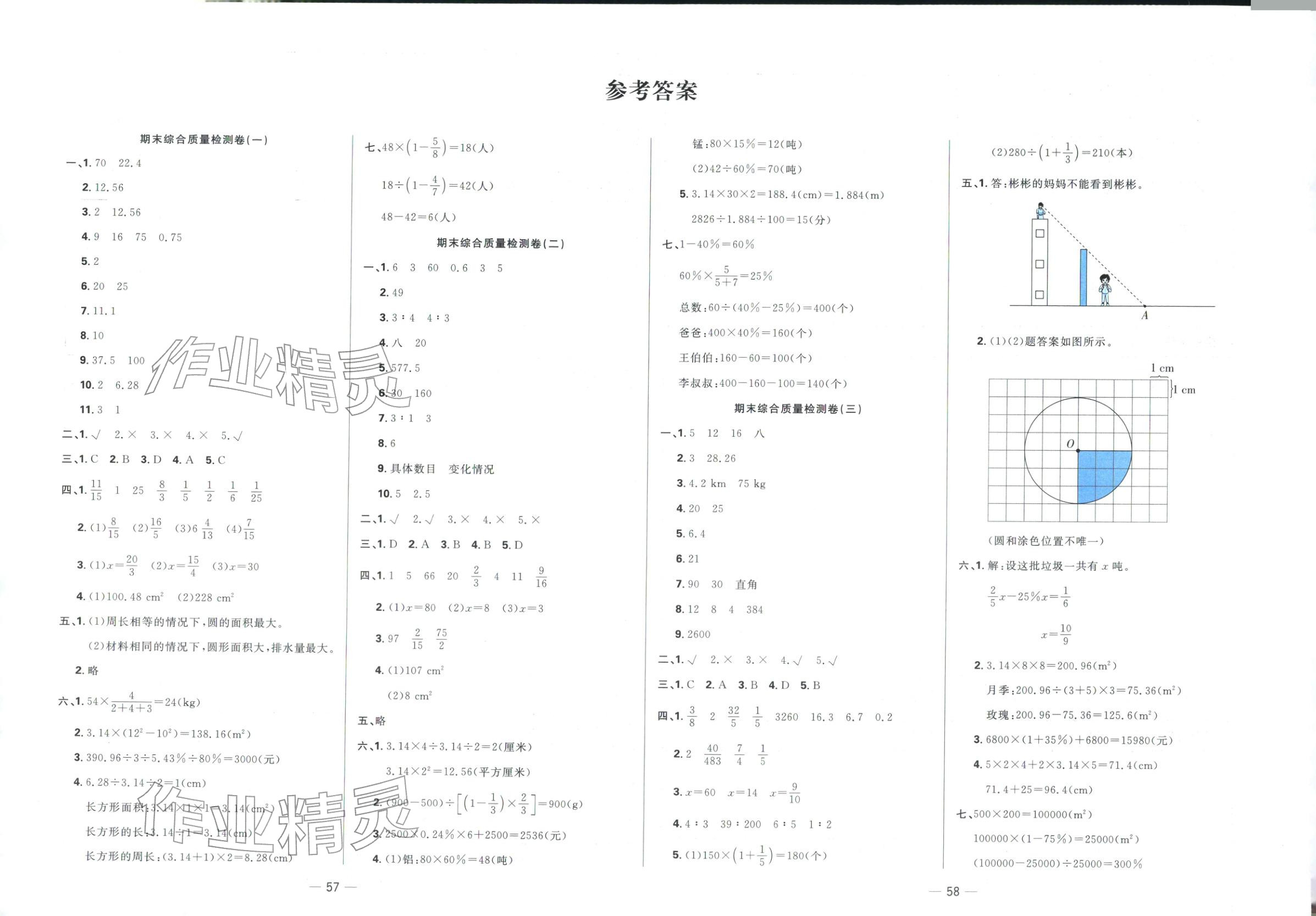 注:目前有些书本章节名称可能整理的还不是很完善,但都是按照顺序排列的,请同学们按照顺序仔细查找。练习册 2025年黄冈期末100分六年级数学上册北师大版 答案主要是用来给同学们做完题方便对答案用的,请勿直接抄袭。