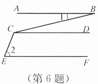6. 如图所示,$ AB // CD $,$ CD // EF $,则 $ \angle BCE $ 等于(