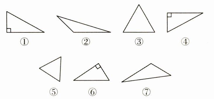 6. (3 分)观察图中的三角形,把它们的序号填入相应横线上.