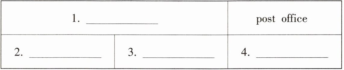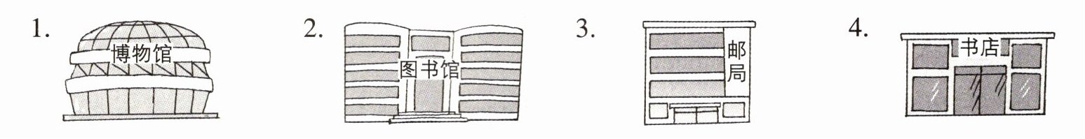 二、Listen and choose. Xinxin给Jack寄了一张明信片,她向Jack介绍了新家附近的一些地点。请听一听,选择相应的单词并将其序号填在横线上。