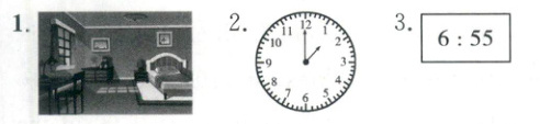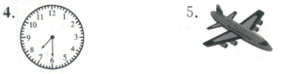 1. home 2. clock 3. time 4. half past seven 5. plane