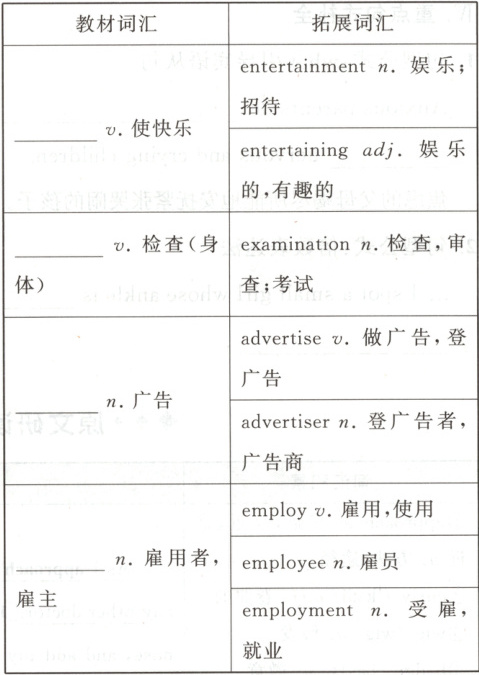 Ⅱ.amusement; entertain; examine; advertisement; employer