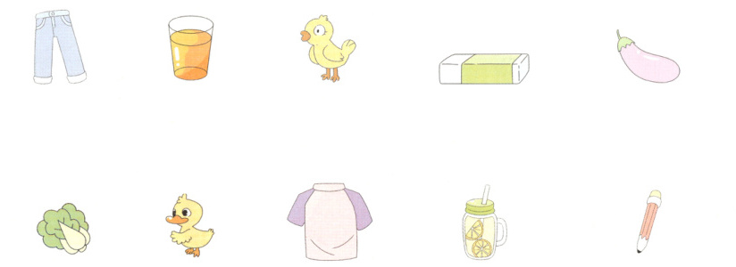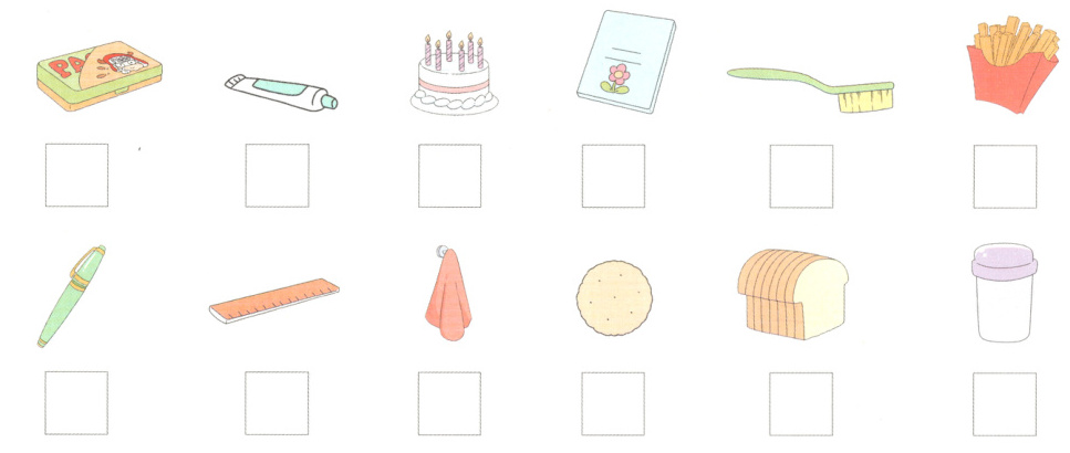3. 是生活用品的画“√”,是学习用品的画“○”,是食品的画“△”。(12分)