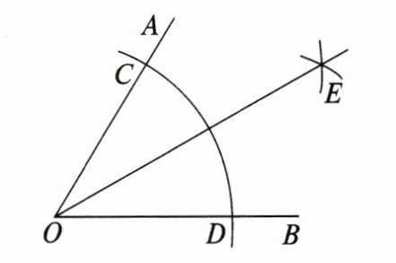 4. 如图,在∠AOB中,以点O为圆心、5为半径作弧,分别交射线OA,OB于点C,D,再分别以C,D为圆心,以CO的长为半径作弧,两弧在∠AOB内部交于点E,作射线OE.若OE= 8,则C,D两点之间的距离为(