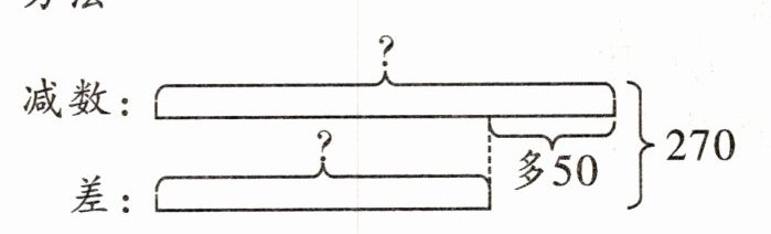 例 被减数、减数与差的和是 540,其中减数比差多 50。被减数、减数与差各是多少?