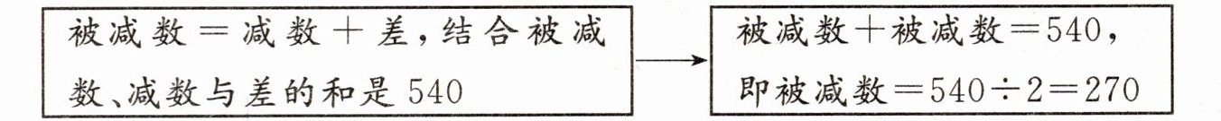 被减数=减数+差,结合被减数、减数与差的和是 540→被减数+被减数=540,即被减数=540÷2=270