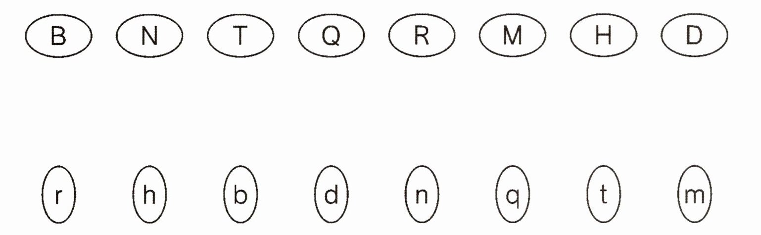 B—b,N—n,T—t,Q—q,R—r,M—m,H—h,D—d。