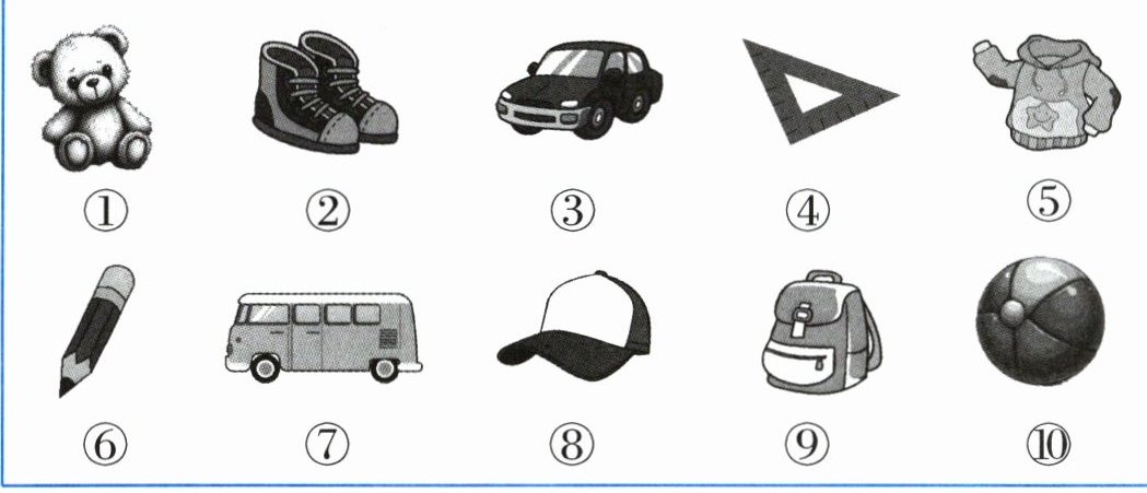 学习用品:④⑥⑨;玩具:①③⑦⑩;服装鞋帽:②⑤⑧