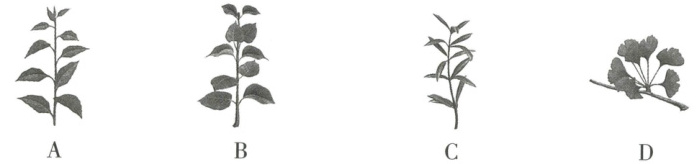 3. 叶片在茎上的排列有不同方式,其中一类排序的特点:每节只生一片叶,交替排列。仔细观察下列图片,符合该描述的是(