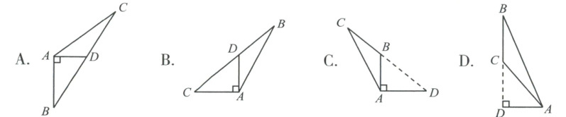 3. 下面四个图形中,线段$AD$是$\triangle ABC$中边$BC$上的高的图形为(