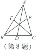 8. 如图,$AD$,$BE$,$CF$是$\triangle ABC$的三条中线,则下列说法中错误的是(