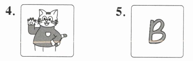5. 第五幅图是字母B,可能对应关于字母B的表述,依据录音判断。