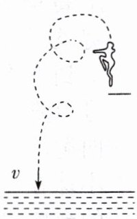 B [在跳水运动中,运动员的头部运动轨迹是曲线。当运动员入水时,其速度方向是竖直向下的,这意味着在轨迹上的某一点,运动员头部的速度方向也必须是竖直向下的,以与入水时的速度方向一致。如图所示: