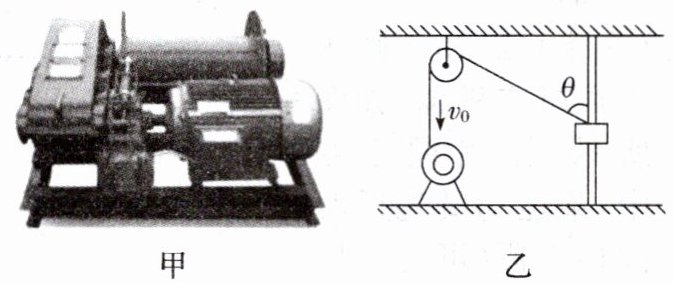 广泛应用。如图乙所示,利用卷扬机将套在光滑竖直杆上的重物提升到高处。当卷扬机缠绕钢丝绳的速度为v₀时,连接重物的钢丝绳与竖直杆夹角为θ,则当重物运动到图示位置时重物的速度v与v₀关系为 ( )