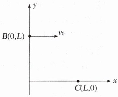 4.(多选)(2025·河北省邯郸市名校联合体高一期末)光滑水平面上建立直角坐标系,质量为m的小球(可视为质点),从y轴上的B(0,L)点以初速度v₀ = $\sqrt{gL}$水平向右进入第一象限,经一段时间过x轴上的C(L,0)点时速度大小为5$\sqrt{gL}$。此过程始终受一个平行于xOy平面但方向大小未知的恒力。则 ( )