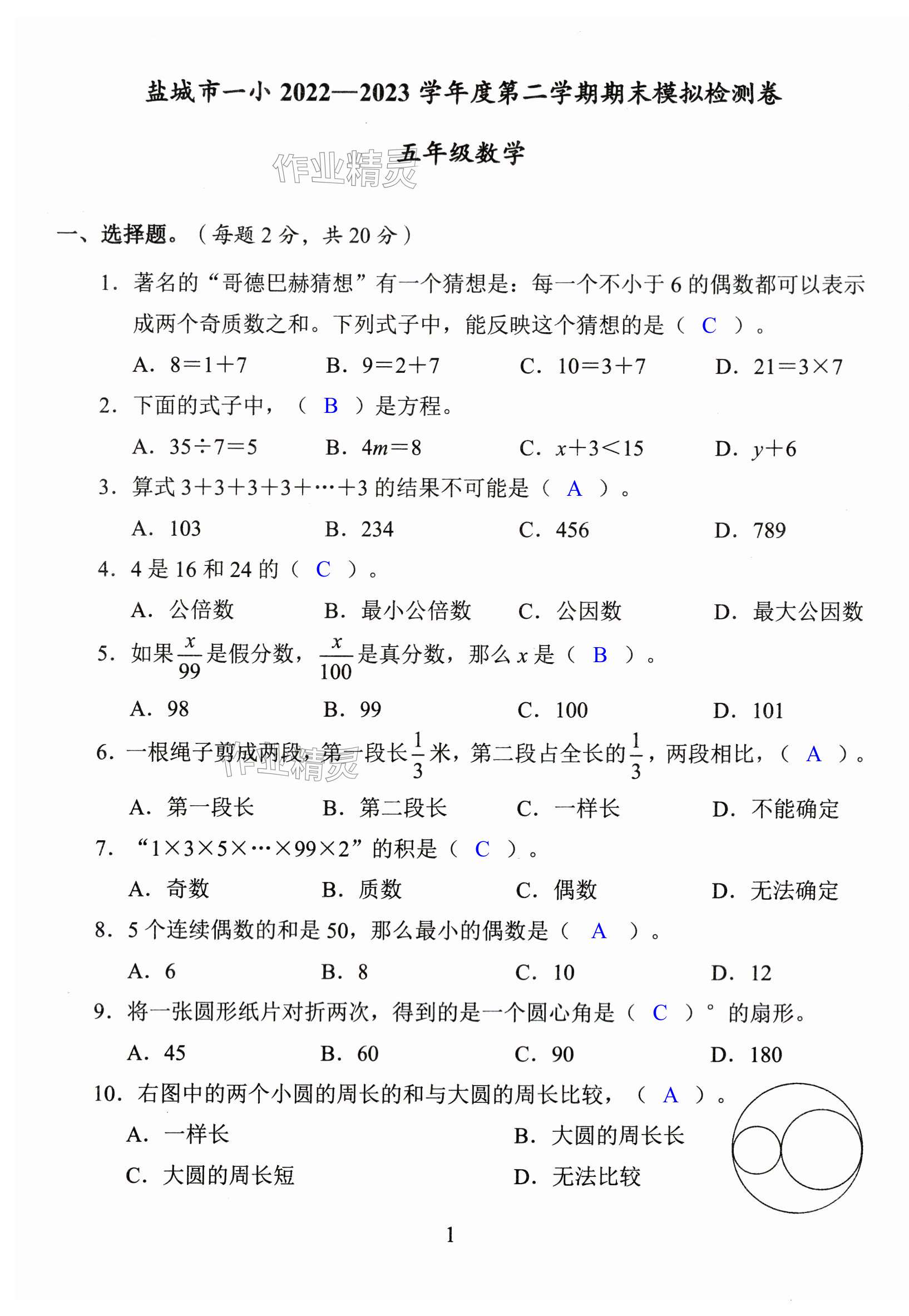 注:目前有些书本章节名称可能整理的还不是很完善,但都是按照顺序排列的,请同学们按照顺序仔细查找。练习册 2024年小学期末试卷汇编北京出版社五年级数学下册苏教版 答案主要是用来给同学们做完题方便对答案用的,请勿直接抄袭。