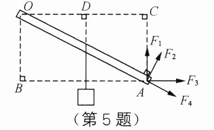 5. 如图所示,有一杠杆可绕O点转动,在它的中点挂一重物,现在它的A端施加动力$ F_{A} $。