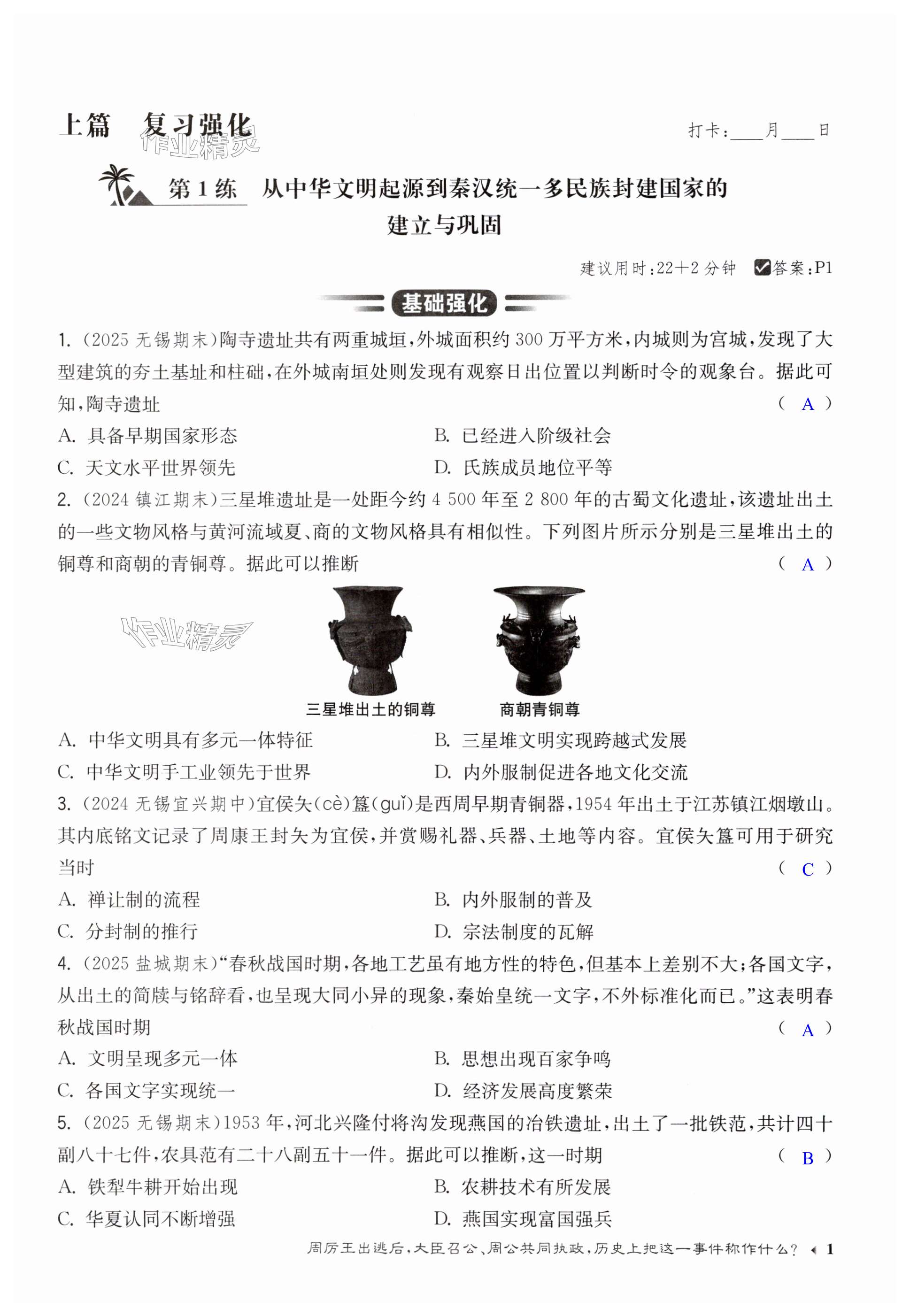 注:目前有些书本章节名称可能整理的还不是很完善,但都是按照顺序排列的,请同学们按照顺序仔细查找。练习册 2025年暑假好帮手高一历史人教版 答案主要是用来给同学们做完题方便对答案用的,请勿直接抄袭。