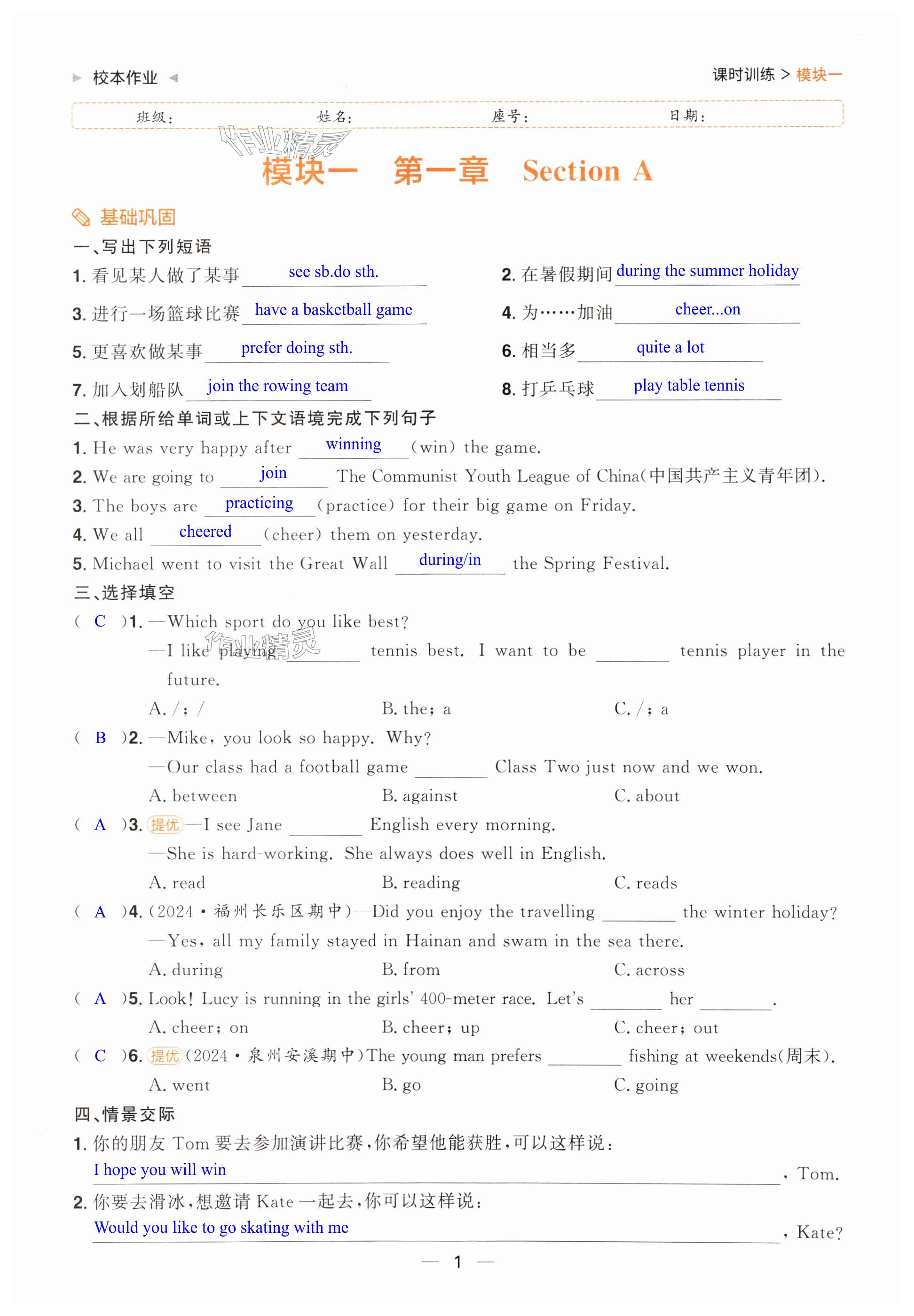 注:目前有些书本章节名称可能整理的还不是很完善,但都是按照顺序排列的,请同学们按照顺序仔细查找。练习册 2024年阳光同学分层设计八年级英语上册人教版福建专版 答案主要是用来给同学们做完题方便对答案用的,请勿直接抄袭。