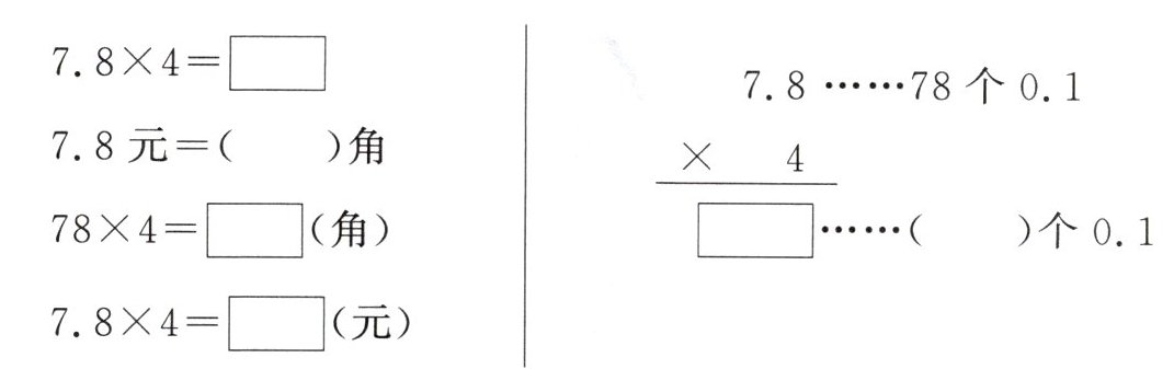 2. 绿植文竹每盆$7.80$元,办公室里添置绿植文竹$4$盆,要多少元?如果用加法计算,列式为(