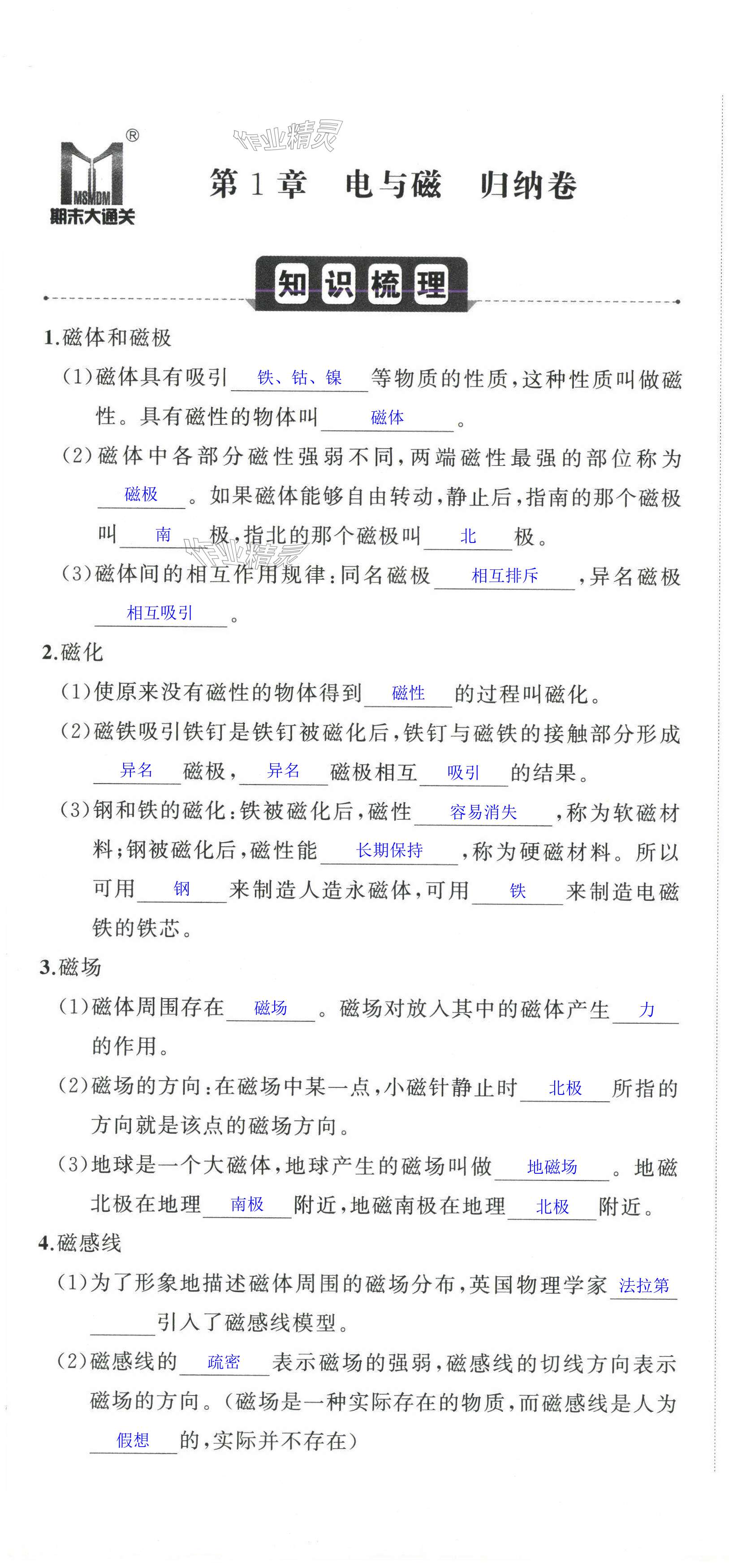 注:目前有些书本章节名称可能整理的还不是很完善,但都是按照顺序排列的,请同学们按照顺序仔细查找。练习册 2024年名师面对面期末大通关八年级科学下册浙教版 答案主要是用来给同学们做完题方便对答案用的,请勿直接抄袭。
