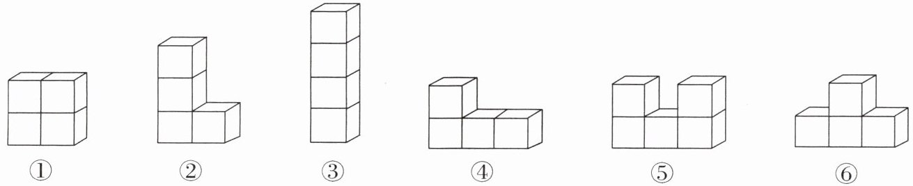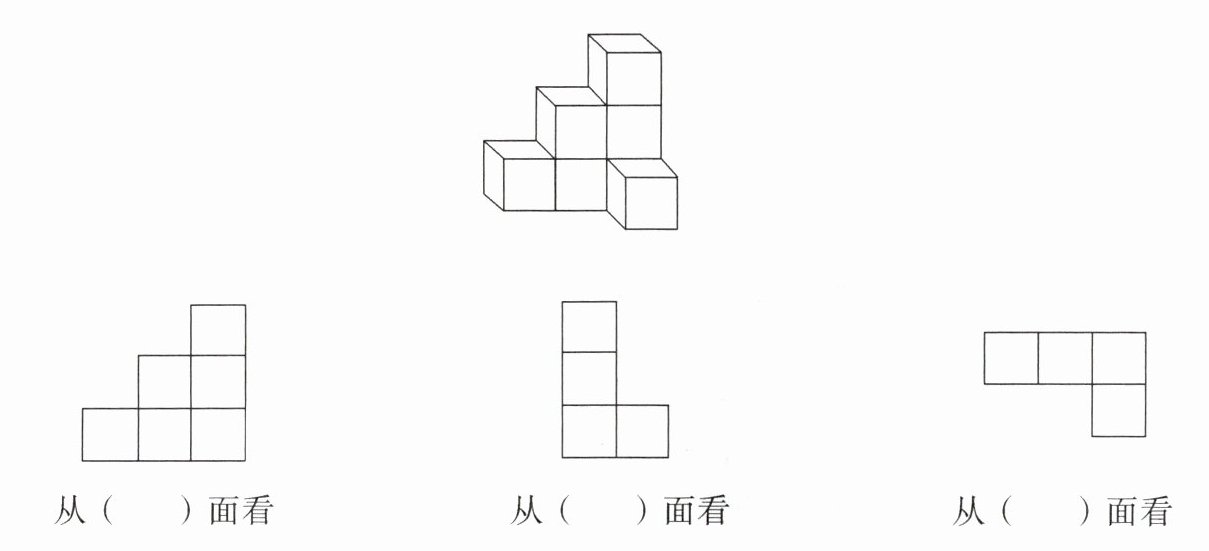 二、根据下面从不同方向看到的图形摆一摆,再画出来。