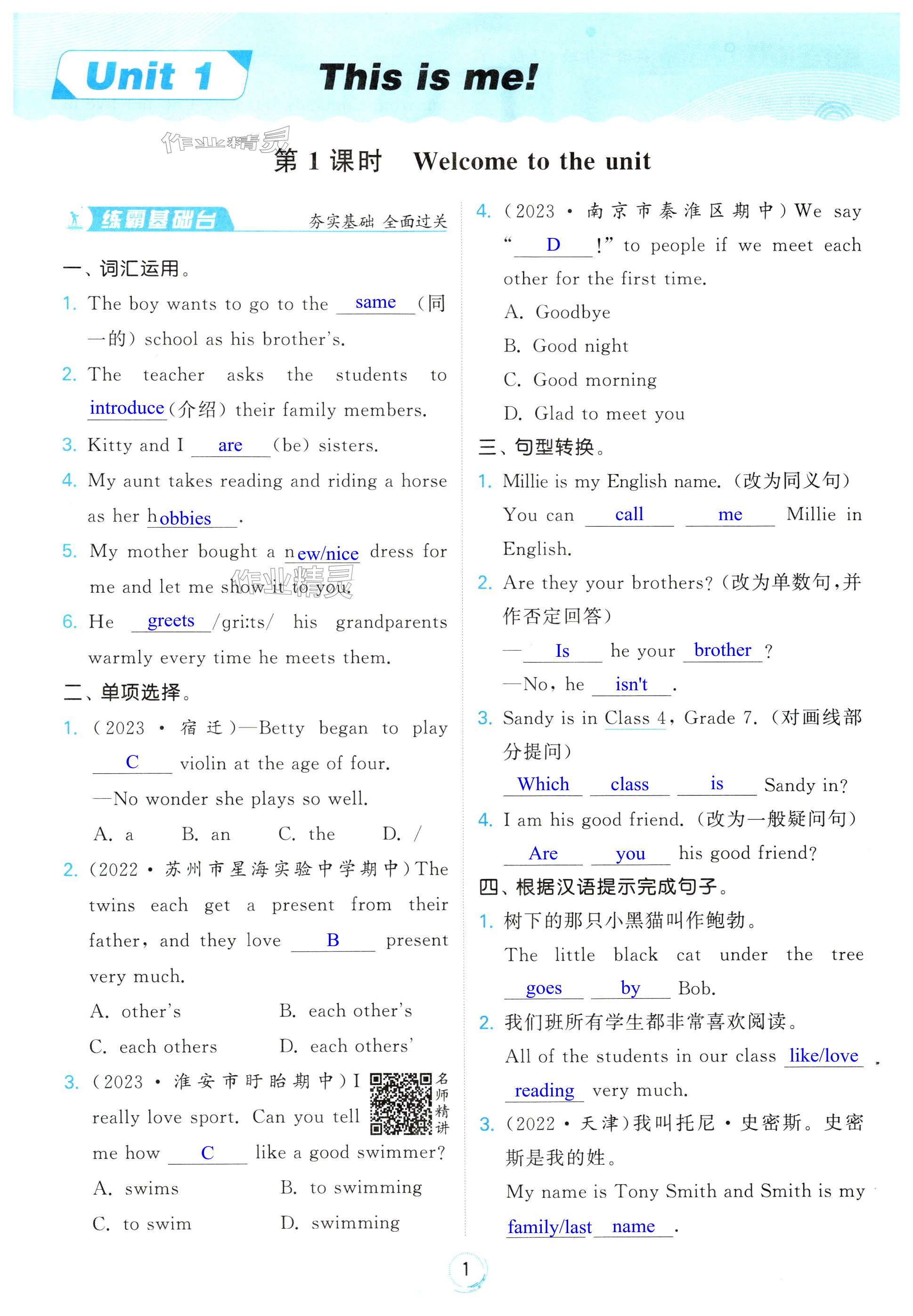 注:目前有些书本章节名称可能整理的还不是很完善,但都是按照顺序排列的,请同学们按照顺序仔细查找。练习册 2024年亮点给力全优练霸七年级英语上册译林版 答案主要是用来给同学们做完题方便对答案用的,请勿直接抄袭。