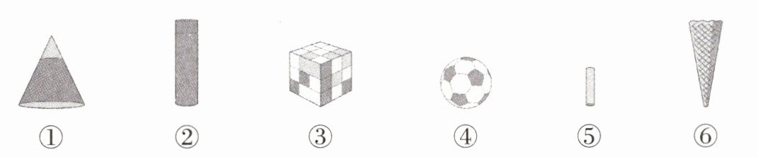 (1)上面这些物品中,( )是圆柱,( )是圆锥。(填序号)