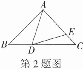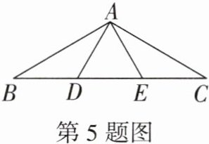 5. (教材习题第2题改编)如图,在$△ABC$中,点D,E 是边 BC 上的点,连接 AD,AE. 若$AB= AC,$$BD= DE= EC= AD= AE$,则图中的等腰三角形的个数为 (