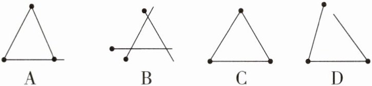 1. 下面是小航用三根火柴组成的图形,其中符合三角形概念的是 (