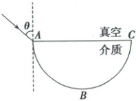 3. 如图,$ABC$为半圆柱体透明介质的横截面,$AC$为直径,$B$为$\overset{\frown}{ABC}$的中点。真空中一束单色光从$AC$边射入介质,入射点为$A$点,折射光直接由$B$点出射。不考虑光的多次反射,下列说法正确的是(