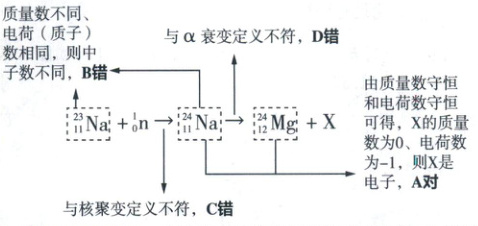 1.【2026届武汉高三调研】中子活化分析法是用中子轰击待测样品,通过测定由核反应生成的放射性同位素衰变时产生的射线能量和强度,进行元素分析。某分析过程涉及的核反应有$_{11}^{23}Na+_{0}^{1}n\to_{11}^{24}Na$和$_{11}^{24}Na\to_{12}^{24}Mg+X$。则