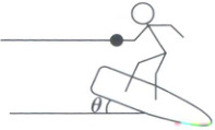 2.【2026届河南示范性高中高三联考】如图所示,在摩托艇牵引下冲浪爱好者在水面上匀速滑行,冲浪板与水面的夹角为$\theta$,冲浪板的速度$v$保持不变,冲浪者及冲浪板的总质量为$m$,牵引绳水平且质量不计。不计空气阻力,水对冲浪板的作用力垂直冲浪板,重力加速度为$g$。则牵引绳的功率为