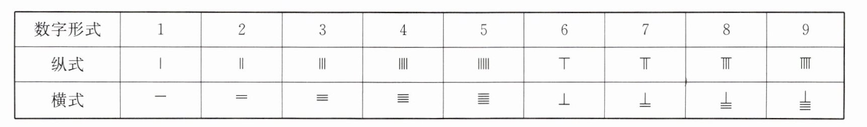 5. [新情境]算筹是在珠算发明以前我国独创并且有效的计算工具,为我国古代数学的发展做出了很大的贡献。在算筹记数法中,以“纵式”和“横式”两种方式来表示数字。如图,表示多位数时,个位用纵式,十位用横式,百位用纵式,千位用横式,以此类推,遇零则置空。示例如下:⊥ 〦 = 〧表示的数为 6728,则〨 丨 ⊥ 〩表示的数是______。