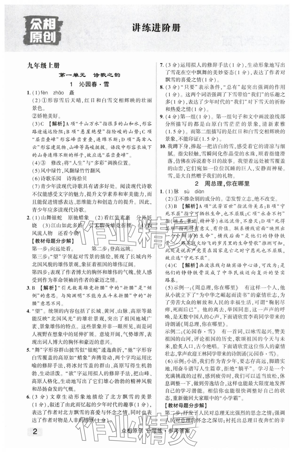 注:目前有些书本章节名称可能整理的还不是很完善,但都是按照顺序排列的,请同学们按照顺序仔细查找。练习册 2025年众相原创分层练九年级语文全一册人教版广西专版 答案主要是用来给同学们做完题方便对答案用的,请勿直接抄袭。