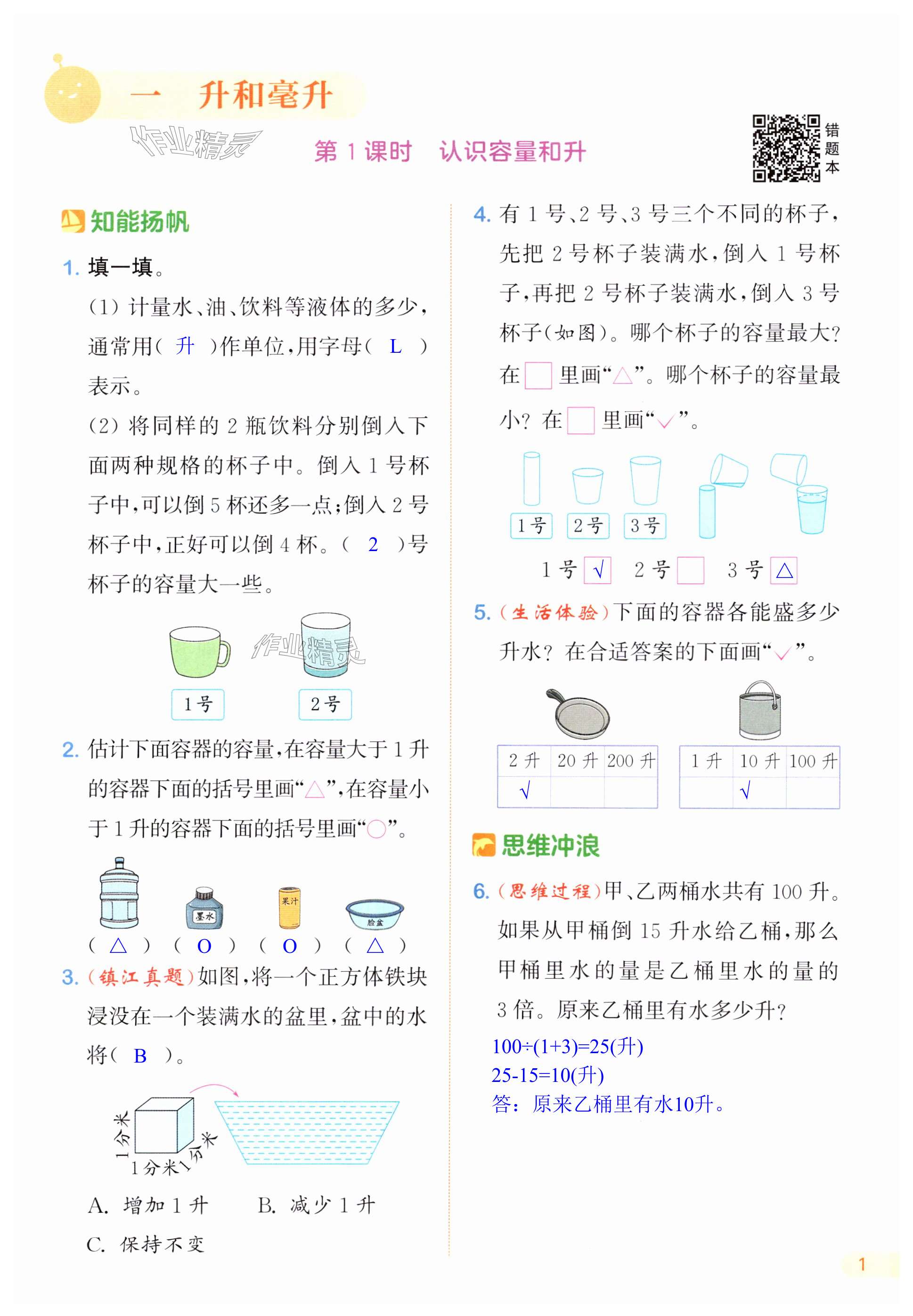 注:目前有些书本章节名称可能整理的还不是很完善,但都是按照顺序排列的,请同学们按照顺序仔细查找。练习册 2024年课时作业本闯关练四年级数学上册苏教版江苏专版 答案主要是用来给同学们做完题方便对答案用的,请勿直接抄袭。