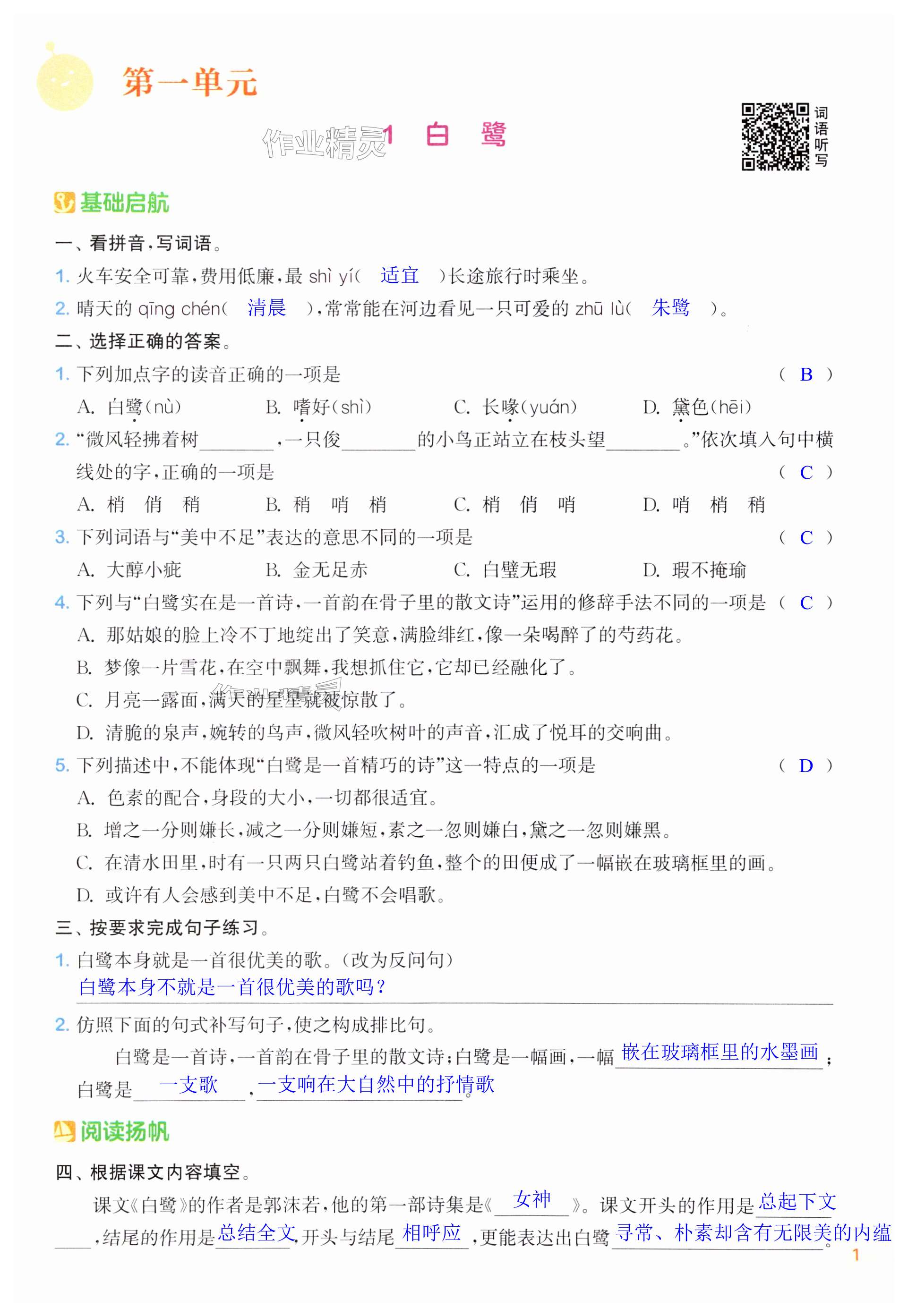注:目前有些书本章节名称可能整理的还不是很完善,但都是按照顺序排列的,请同学们按照顺序仔细查找。练习册 2024年课时作业本闯关练五年级语文上册人教版江苏专版 答案主要是用来给同学们做完题方便对答案用的,请勿直接抄袭。