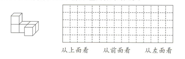 从上面看 从前面看 从左面看[提示]画图时分层来画。从上面看,先画上面的3个,再画右下角的1个。从前面看,先画下面的3个,再画左上角的1个。从左面看,先画下面的2个,再画左上角的1个