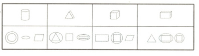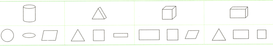 4. 乐乐和小伙伴们在沙坑里印图形。用这些物体能印出下面的哪个平面图形?圈一圈。