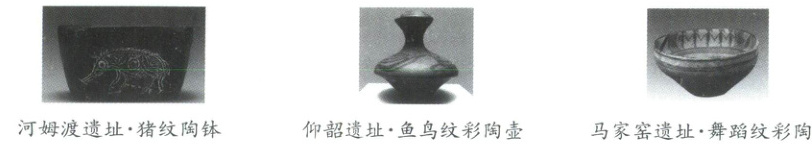 1.(2022·山西·1)考古发现是了解史前社会历史的重要依据。下面的出土文物从器物造型和图案设计上可以印证我国原始居民(