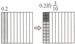7. (温州永嘉、瓯海)计算“$0.2×0.3$”时,明明是这样画图思考的:$0.2×0.3$表示$0.2$的$\frac{3}{10}$是多少,也就是把$0.2$平均分成$10$份,取其中的$3$份。所以$0.2×0.3=(2×3)$个(