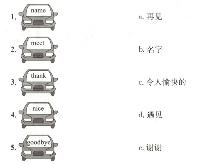 1.B;名字 2.A;健康的 3.C;感谢 4.C;令人愉快的 5.A;遇见