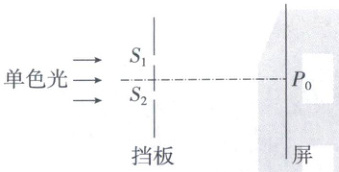 则屏上中央亮条纹到$S_1$的距离要小于到$S_2$的距离,因此屏上中央亮条纹在$P_0$上方,A、B、C错误,D正确。