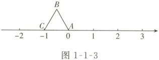 03 等边三角形 ABC 在数轴上的位置如图 1 - 1 - 3 所示,点 A,C 对应的数分别为 0 和 - 1。