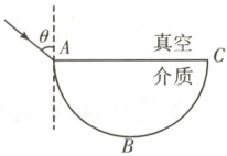 3. 如图,$ABC$为半圆柱体透明介质的横截面,$AC$为直径,$B$为$\overset{\frown} {ABC}$的中点。真空中一束单色光从$AC$边射入介质,入射点为$A$点,折射光直接由$B$点出射。不考虑光的多次反射,下列说法正确的是