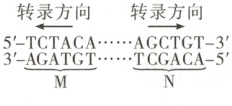 解题思路 转录时,mRNA的延伸方向为$5'→3'$,由此可确定基因M和N的转录模板链和转录产物的碱基序列: