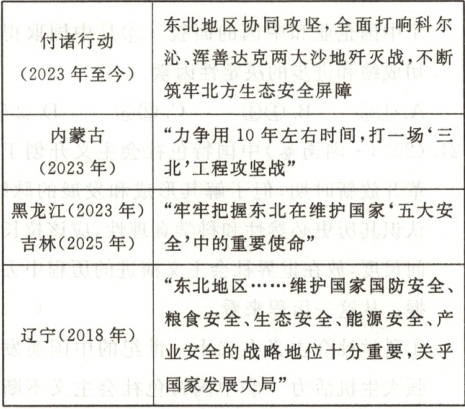 B 自2018年起,习近平总书记对于东北地区生态安全作出系列重要论述,指导东北地区筑牢北方生态安全屏障的行动取得成效,这说明习近平总书记的重要论述成为建设北方生态安全屏障的行动指南,①正确。材料中,习近平总书记作出的关于辽宁、黑龙江和吉林在国家安全方面的论述,明确了东北在维护国家安全大局中的战略定位,④正确。东北地区生态的客观实际是东北生态文明建设高质量发展的前提,②排除。材料中,习近平总书记对东北地区在维护国家安全大局中的具体地位进行了明确,并对东北地区提出有关要求,未涉及论证东北全面振兴的巨大生态环境优势,③排除。