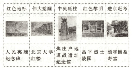 错误项分析 材料中的展出作品是以北京地区中国共产党在新民主主义革命时期的革命历程为主线,并非以社会主义制度的创立和发展为主线,②错误。手绘作品是对革命原址文化价值的艺术呈现与传承,并不能复原革命原址的文化价值,③错误。]